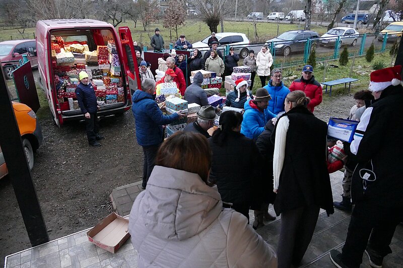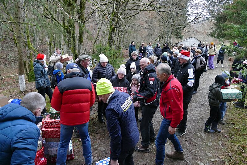 Die Gruppe verteilte in den Karpaten, ausgehend von Königsfeld, an 2 Tagen insgesamt ca. 4.000 Pakete. Für manche Kinder ist es das einzige Geschenk, das sie bekommen. Die 21 Einrichtungen des weitläufigen Gebietes konnten nur deswegen innerhalb der Gruppe geschafft werden, weil teilweise an 3 Schulen zugleich verteilt wurde.